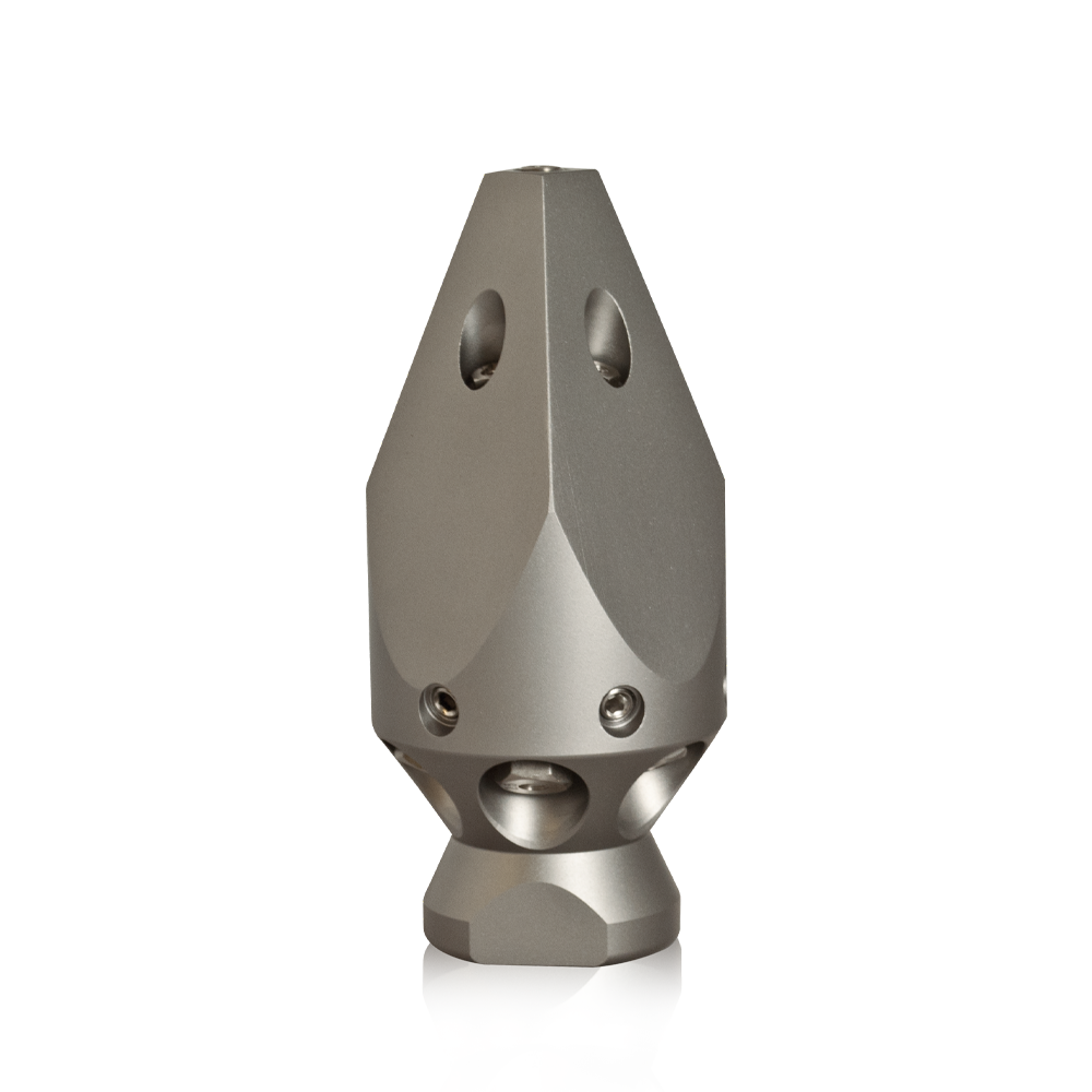 Nach vorne räumende 3- Kant Standarddüse („Stocherdüse“) aus rostfreiem Stahl (VA). Die scharfen Kanten unterstützen schneidend die 4 nach vorne gerichteten Düsen und bewältigen somit beinahe jede Verstopfung. Die Quattro- Düse erreicht selbst bei Rohrverpressungen oder beim Freispülen von vereisten Rohren optimale Ergebnisse.